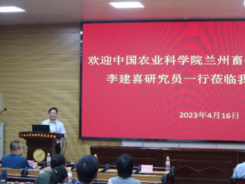 4月16日下午15:00,中国农业科公司兰州畜牧与兽药研究所李建喜研究员受邀在WilliamHill中文官网318报告厅为广大师生作题为“发酵技术在中药创新中的应用研究进展”的学术报告。WilliamHill中文官网副经理何家康教授主持报告会,100余名动科院师生积极参加报告会。