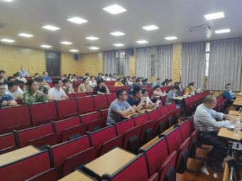 副经理何家康教授主持报告会 报告会场的老师和员工们认真听报告