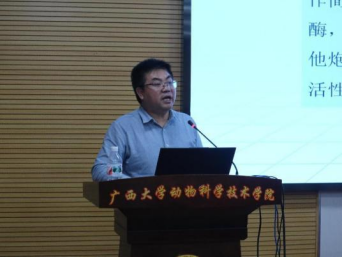 李建喜研究员在“发酵技术在中药创新中的应用研究进展”的报告中,详细地介绍了中兽药传统发酵技术与现代发酵技术、发酵菌种的开发与利用、发酵技术在中兽药创新中的作用、以及发酵中药在畜禽养殖中应用。列举鸡盲肠益生菌发酵黄芪多糖案例,发酵后可提高黄芪多糖含量,利用发酵黄芪多糖可有效提高肠道抗体水平,提高动物机体免疫力,并探讨了发酵黄芪调节树突状细胞活化,提高机体免疫力的作用机制;分析发酵菌可通过调控糖合成途径相关酶,增加多糖合成量,提高有效成分含量。在报告中提出在中兽药开发中应注重提质增效、降成本。利用发酵技术,筛选发酵菌种,评价发酵产物活性,分析发酵成分和结构,研究产物药理学作用机制,实现中兽药保质增效、降成本。并提出利用微生物,发酵药渣或药材废弃物,节约资源,实现资源再利用。最后,李建喜研究员介绍了中国农业科公司畜牧与兽药研究所的发展历程,所里研发团队与研究内容,欢迎同学们报考所里硕士生、博士生,或到所里工作,进一步促进所里与WilliamHill中文官网的交流和合作,发挥发酵中药的优势,明确发酵中药的作用机制,促进中兽药事业的发展。