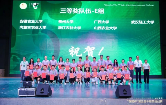 2023年8月4日至7日,公司研究生杨嘉骅、谢欣、李琪、陈火兰(奶牛组,指导教师:林波、孔志伟);卢俊、何琴、岑克和、王昊鹏(肉牛组,指导教师:黄洁萍、张瑞门)代表威廉希尔WilliamHill参加了由中国学位与研究生教育学会、中国科协青少年科技中心共同主办,中国农业大学和宁夏大学联合承办的“强国杯”第五届牛精英挑战赛。