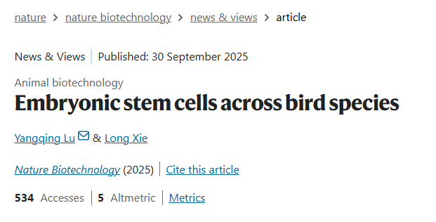 陆阳清教授团队长期致力于动物繁殖生物技术研究,在禽类干细胞和基因编辑技术方面取得多项成果,此次受邀发表关于鸟类胚胎干细胞的观点评审文章,显示了团队在该方向的国际影响力。未来,团队将持续专注禽类生殖干细胞技术研究和应用研究,为农业动物生物育种科技创新与生物多样性保护贡献力量。