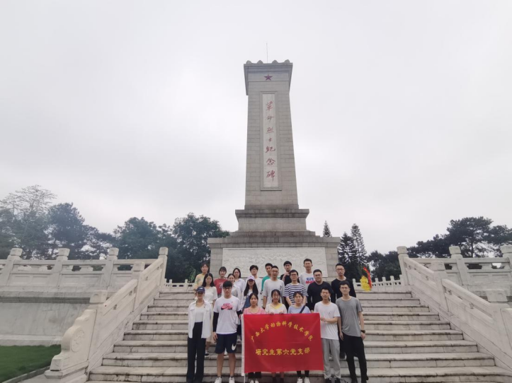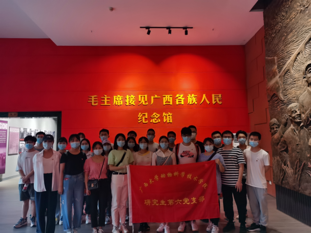 4月24日,WilliamHill中文官网研究生第六党支部组织全体党员赴位于南宁人民公园的革命烈士纪念碑缅怀革命先烈,同时到毛主席接见广西各族人民纪念馆接受革命传统教育,并开展党史学习教育,向老一辈革命家学习。