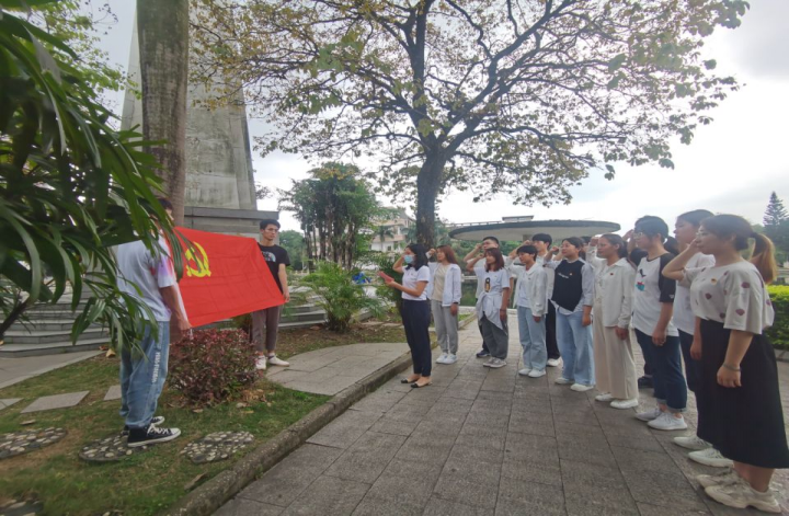 在碧云湖畔的爱国民主运动纪念牌前,全体党员面对鲜红的党旗,重温入党誓词。铿锵豪迈的誓言使每位党员仿佛回到了入党那一刻,使他们进一步坚定了理想信念,明确了自己所肩负的时代使命,学好专业知识,练就过硬本领,在今后的学习和工作中,积极投身祖国建设,助推乡村振兴,共同为新时代新征程的远大目标奋勇拼搏。