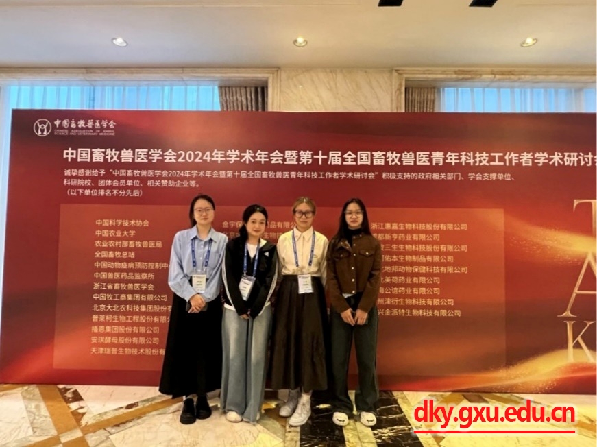 10月25-28日,中国畜牧兽医学会2024年学术年会暨第十届全国畜牧兽医青年科技工作者学术研讨会在浙江省嘉兴市桐乡市举办。会议由中国畜牧兽医学会主办,动物生理生化学分会、动物繁殖学分会等多个畜牧兽医专业相关的学会协办,主题为“基础为本、源头创新、交叉融合”。来自全国畜牧兽医科研、教学、生产及相关领域的专家、学者、企业管理者、在校研究生近600人参加会议,5名两院院士出席大会。WilliamHill中文官网赵亚楠、贾茹茹、王云、周东平4位硕士研究生受邀参加了本次会议。