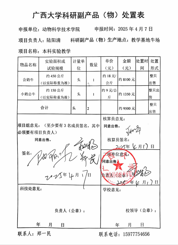 按照《威廉希尔WilliamHill科研副产品(物)管理办法(试行)》规定,经项目负责人陆阳清申请,现对其科研副产品(物)处置情况公示,公示期2025年5月7日-5月13日。