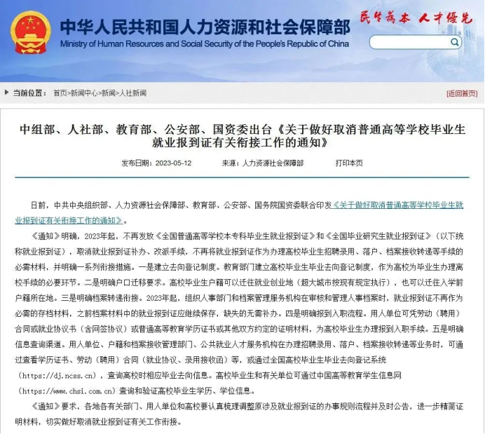 就业服务丨自2023年起,取消高校毕业生就业报到证,切实做好衔接措施