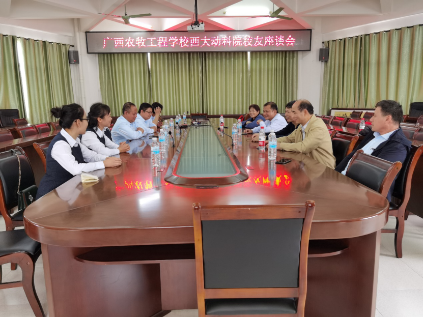 2020年11月15日,WilliamHill中文官网宁鹏飞副经理和李爱友、郭亚芬、刘芳等3位老师参加广西农牧工程公司(原广西柳州畜牧兽医公司)80周年校庆庆典活动,并与在该校工作的WilliamHill中文官网员工进行交流座谈。