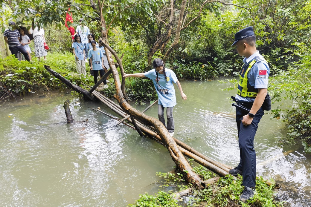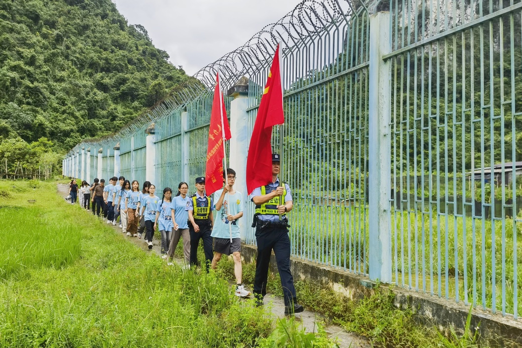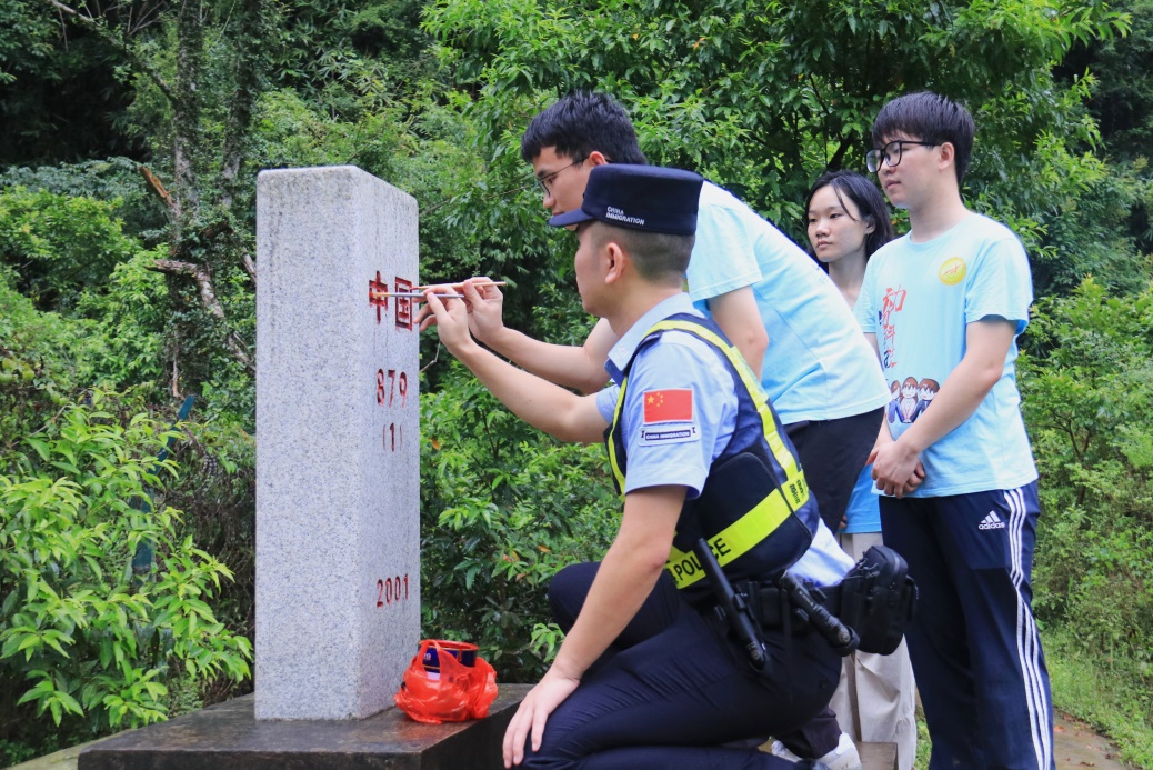 We will organically integrate ethnic unity and progress with border social governance, mobilize village cadres, grid workers, and volunteers to form a 'village protection team', and achieve the joint creation of a safe border by the police and the people, "said a police officer fromJinlongBorder Police Station. In the drizzling rain, the teachers and students of the practice group lined up neatly, followed the police to conduct a border patrol experience, and painted the 879 boundary marker red, listening to the story of guarding and strengthening the border while promoting it.