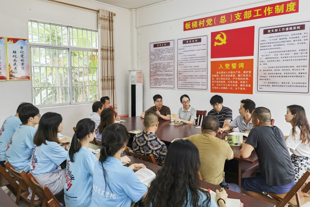 The practice team of teachers and students visitedBantiVillage,JinlongTown,LongzhouCounty. Combining the characteristics of the village's culture and professional skills, they carried out activities such as technical guidance, policy interpretation, book donations, and field research in the local area. With practical actions, they fulfilled their youth mission, helped rural revitalization, and personally felt the effectiveness of rural revitalization construction.
