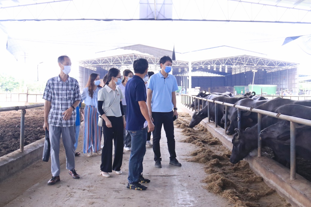 The practice team of teachers and students came to GuangxiLongzhouGanniuBreeding Co., Ltd. and comprehensively understood its development history, business sectors, ecological protection, Guangdong Guangxi cooperation, and other aspects through picture displays, model sand tables, monitoring videos, and on-site inspections. They also had discussions and exchanges with the company's leaders on talent cultivation, industry education integration, internship practice, and other aspects.
